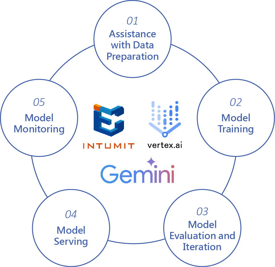 INTUMIT 很榮幸成為官方 Google Cloud 合作夥伴之一。這使我們能夠利用 Google 的 Gemini AI 模型打造前沿的人工智慧產品。透過 Google Vertex AI Vizier 與 Vertex AI Experiments,我們可進行無程式碼的超參數調整或自訂訓練,協助客戶成功推動數位轉型計畫,並實現各種生成式 AI 服務場景。